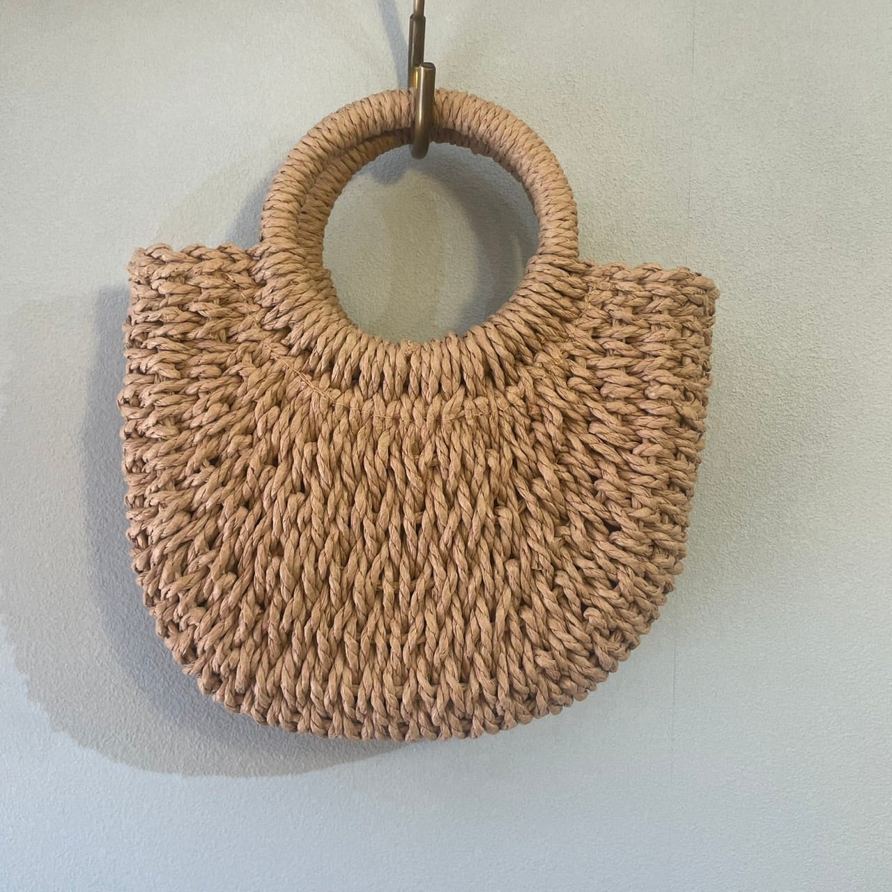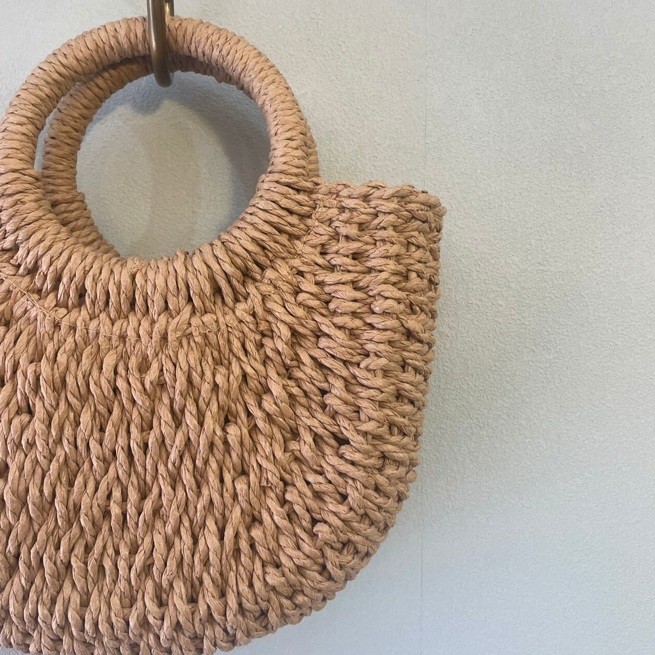 柔らかな風合いの天然素材風の編み込みデザインが魅力のハンドバッグ。丸いハンドルがアクセントとなり、コーディネートに優しい抜け感をプラスしてくれます。しっかりとした厚みのある編み込みで、ナチュラルながら高級感も漂います。普段使いはもちろん、リゾートやピクニックなどアウトドアシーンにもぴったりなアイテムです。